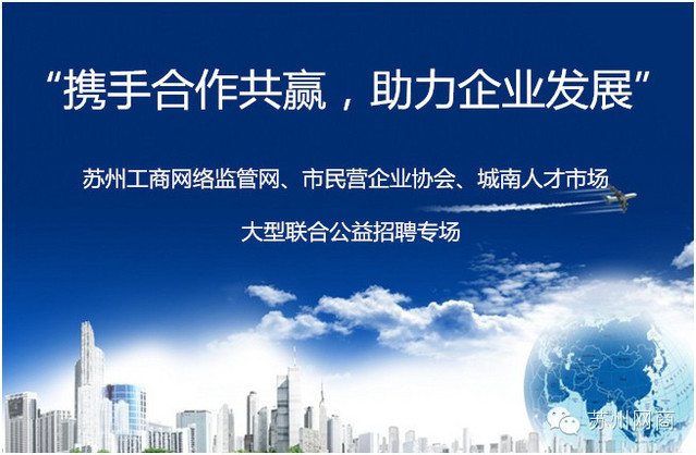 近日,苏州工商网络监管网、苏州市民营企业协会充分发挥平台功能,于5月16日,联合苏州市城南人才市场、苏州网信工商信用服务有限公司举办了一场“携手合作共赢,助力企业发展”的大型联合公益招聘活动。